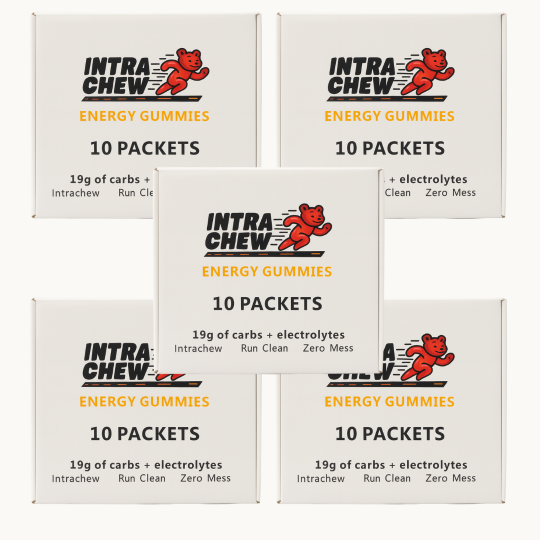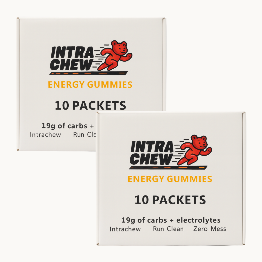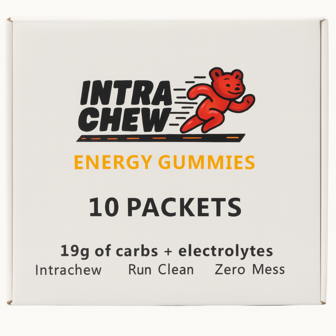 IntraChew Energy Gummies are made entirely with natural ingredients. No junk, no weird fillers, just clean fuel built for endurance athletes. Every serving is designed to keep you steady when the miles get ugly. Fast carbs for quick energy, electrolytes to replace what you sweat out, and a texture you’ll actually look forward to eating.